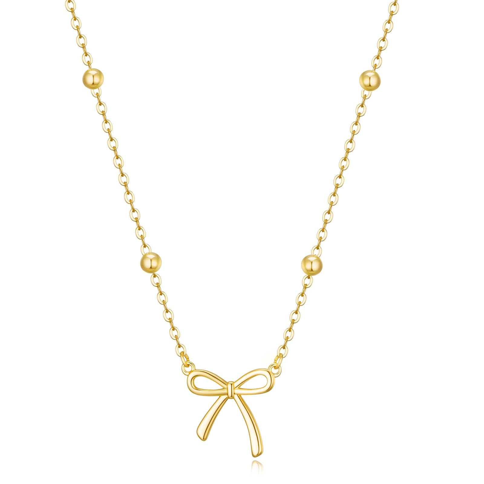 Thaivor Stocking Stuffers Necklace for Women Dainty Bow Necklace 14K Gold Plated Cute Choker Small Pendant Charm Necklaces Teen Gift Trendy Stuff Personalized Jewelry Christmas Gifts