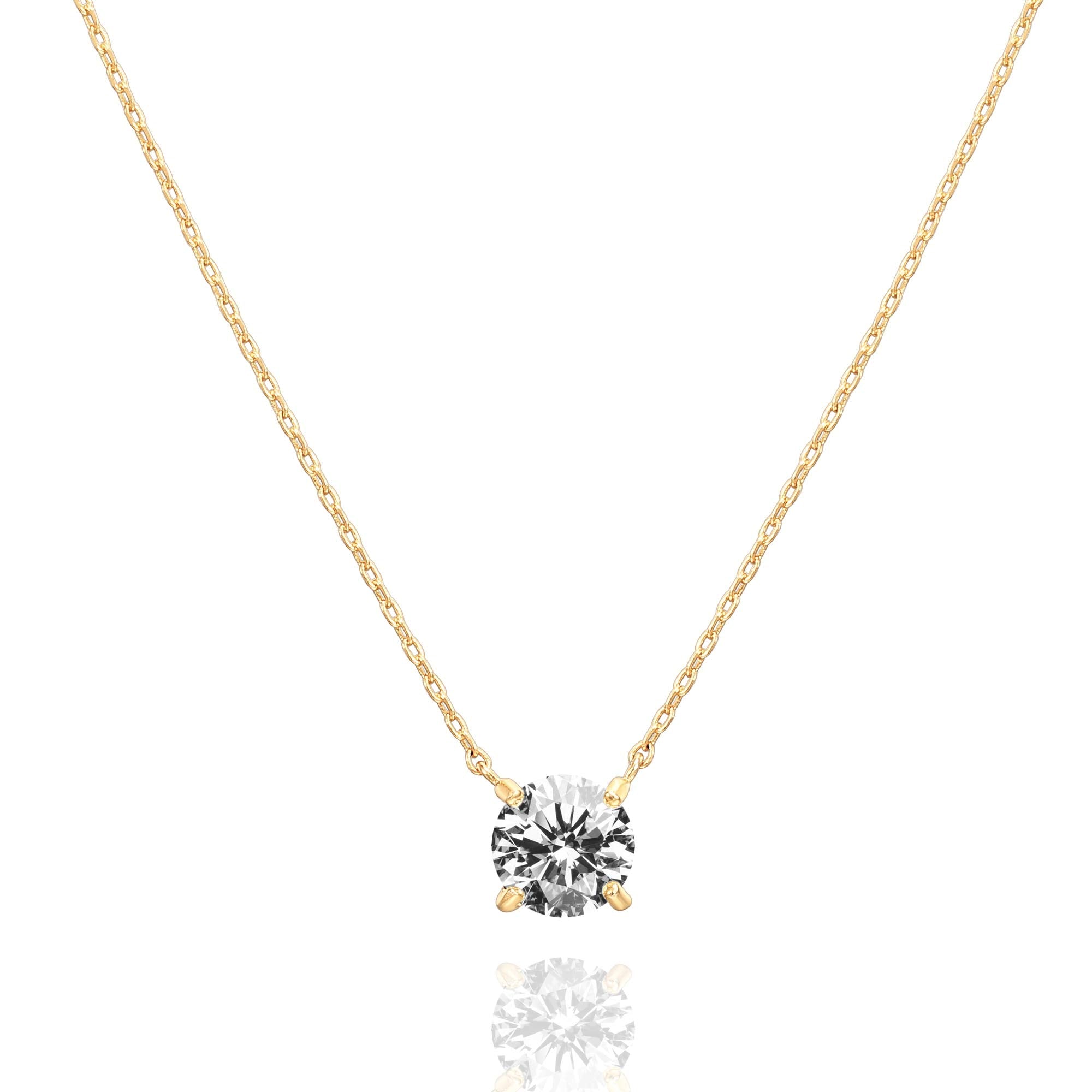PAVOI 14K Gold Plated Crystal Solitaire 1.5 Carat (7.3mm) Cubic Zirconia Dainty Choker Necklace | Gold Necklaces for Women