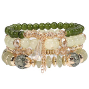 4Pcs Bohemia Multilayer Stackable Beaded Bracelets Set Colorful Crystal Stone Gold Beaded Stretch Bracelets Hawaii Charm Bracelet for Women Men Summer Beach Boho Vacation Jewelry Gifts-Green