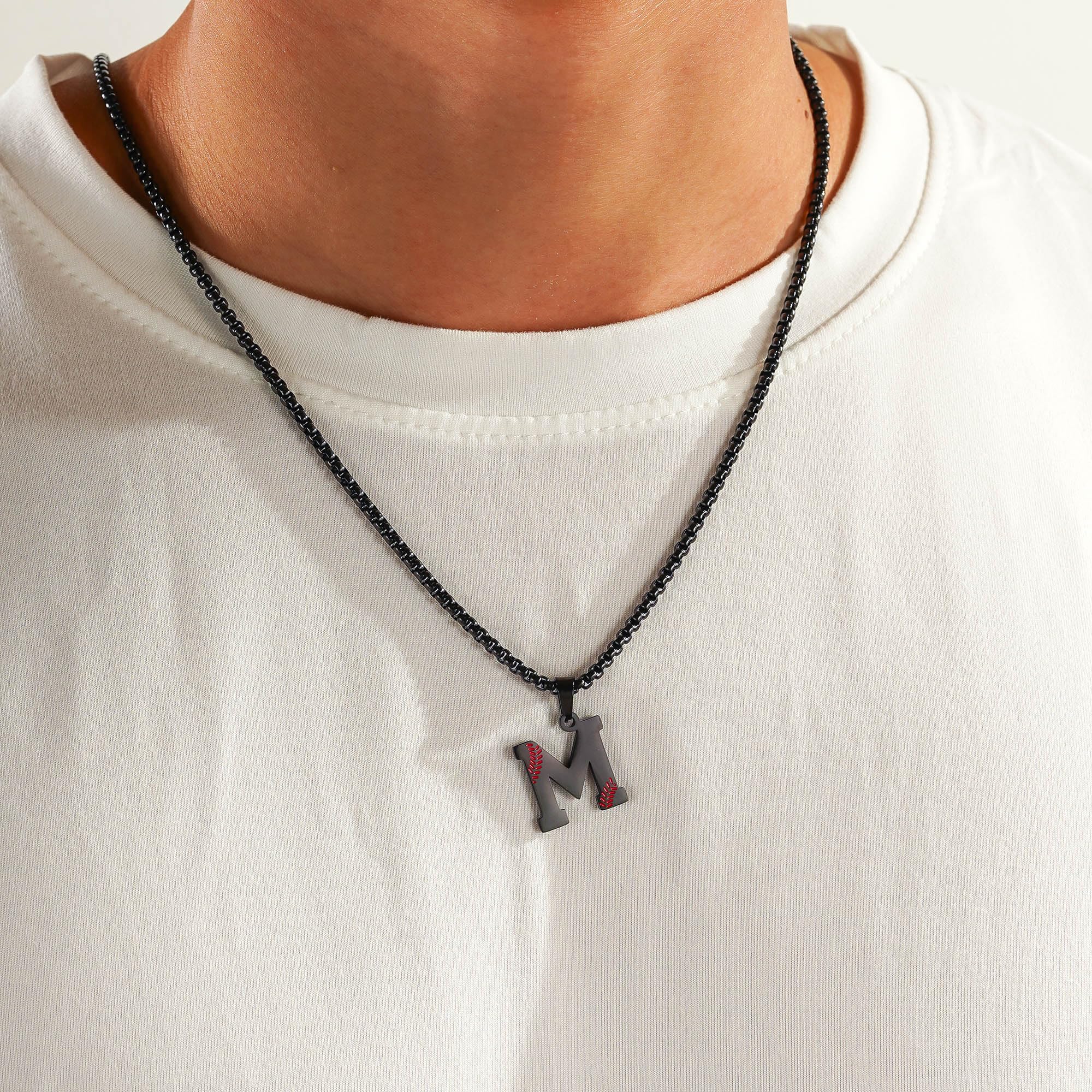 Layered Initial A-Z Pendant Necklaces for Men, Stainless Steel Letter Cuban Link Herringbone Chain Necklace Fashion Jewelry Gifts